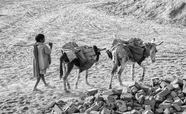 The process employs workers of multiple physical abilities, be that children, teenagers or adult producing upwards of 2000 bricks a day. The weaker member of the family; the children as young as 6 and the elderly carry out simple tasks of turning the newly molded bricks to dry or of guiding donkeys laden with bricks. The more able members dig out the soil and mix it with sand and water, mold the bricks in rows, stack them up after drying and transport them into and out of the kilns – this last task is physically demanding and often carried out in extremely dusty and hazardous conditions.