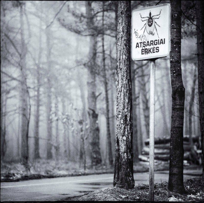 Tick warning sign in Lithuania. Warmer winters have expanded the range of ticks in Europe, including the UK, contributing to rising cases of Lyme disease.